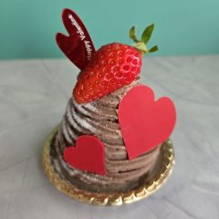 その名もチョコ・モン チョコレートのモンブランです。 中にはいちごひと粒、大きな生チョコが入った贅沢なモンブラン 底生地はヘーゼルナッツクッキーです。 2月11日㈬~販売です。